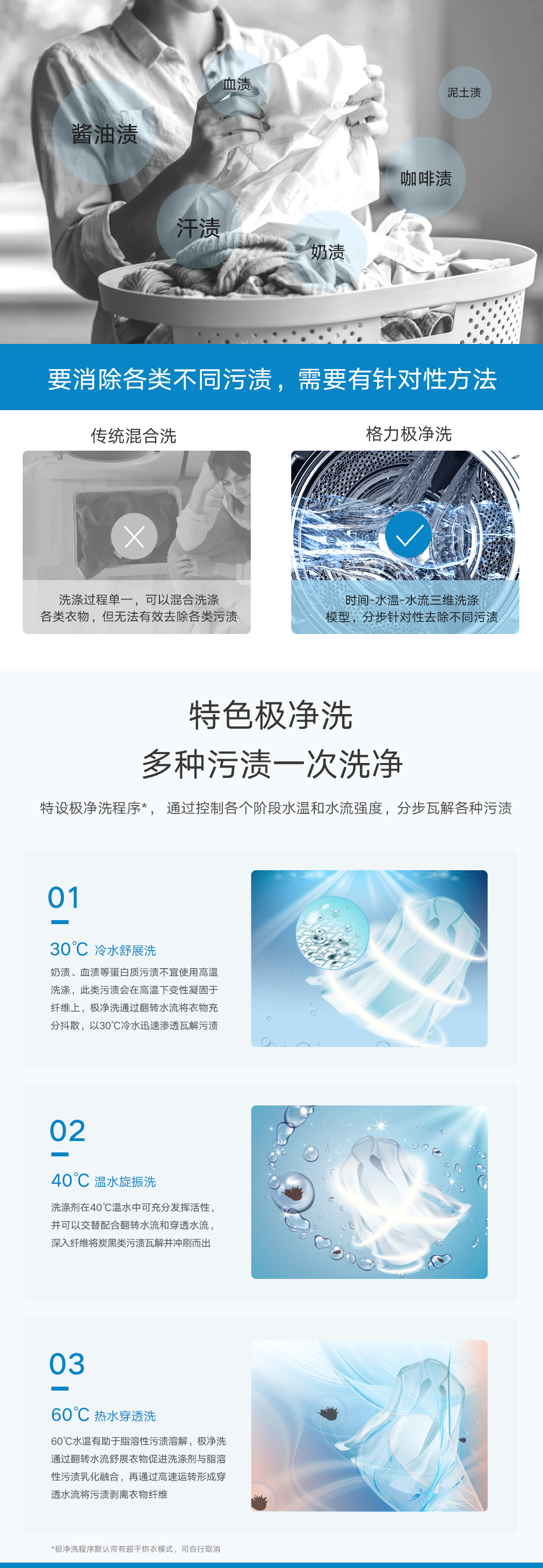 極凈去污,一次洗凈多類污漬,洗烘一體,即洗即烘即穿.