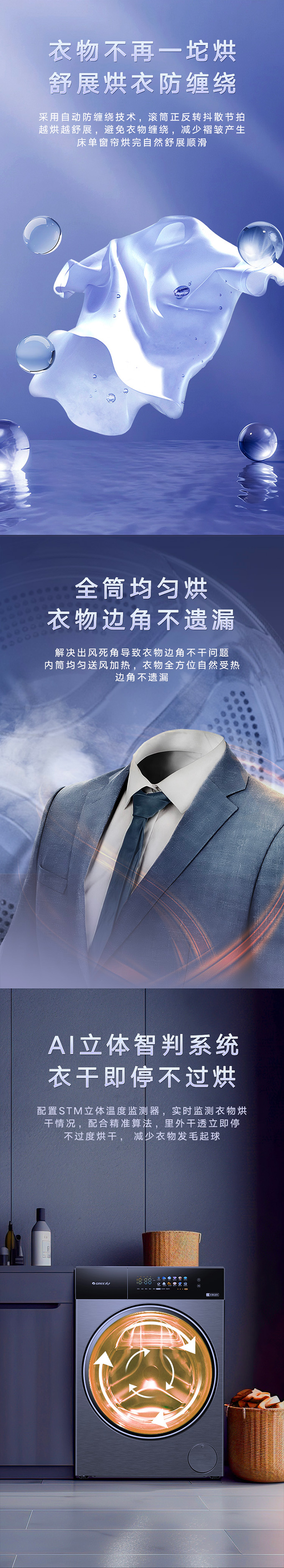 全域透氣烘,衣物不在悶著烘。AI智能感應(yīng),臟污一鍵洗凈。