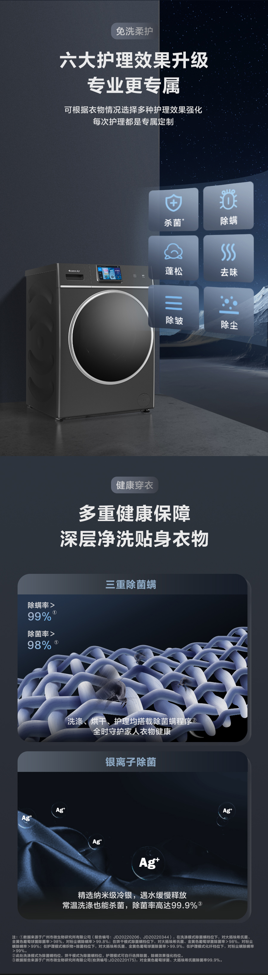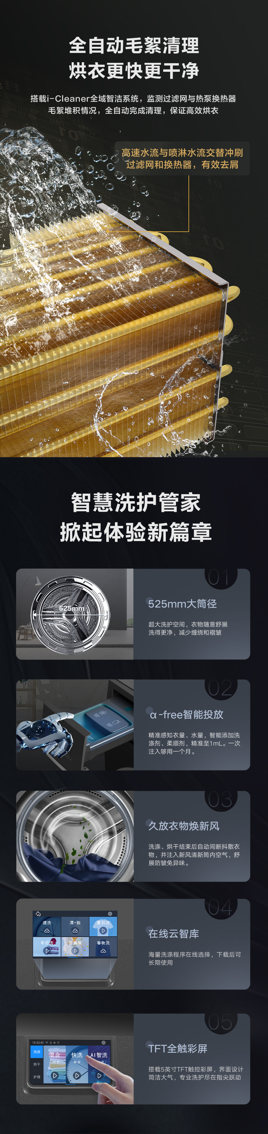 37℃低溫柔烘不傷衣;全域超微蒸汽洗;ICleaner全域智清潔