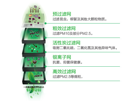 創(chuàng)新使用五層過濾模式,徹底隔絕顆粒進(jìn)入室內(nèi),經(jīng)權(quán)威結(jié)構(gòu)檢測,一次過濾效率達(dá)99.4%,貼心呵護(hù)家人健康。